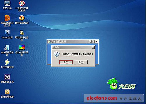 接下來一路ok之后,會(huì)彈出一個(gè)對(duì)話框問你是否將指定的GHO境像恢復(fù)到電腦的C盤去(有的機(jī)器有多塊硬盤。一定判斷是否C盤是原來的啟動(dòng)分區(qū),如果不是,請(qǐng)選擇其他盤,單硬盤的用戶一般都是C盤),點(diǎn)擊yes就可以了。