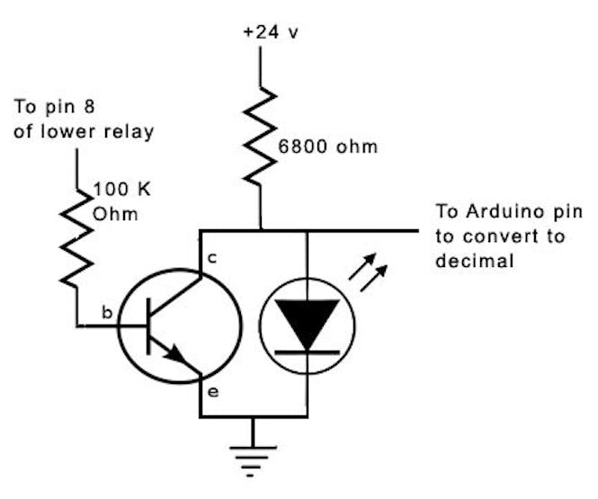 我在 1960 年的原始項(xiàng)目在某些方面比這個(gè)項(xiàng)目更容易。我想我使用的是 24 伏交流繼電器——我不記得處理過直流電源。我認(rèn)為一個(gè) 24 伏變壓器為整個(gè)設(shè)備供電,這意味著它可以關(guān)閉兩個(gè)串聯(lián)的 24 伏繼電器,所以我不必像這次那樣以推薦電壓的兩倍來操作我的繼電器。我的繼電器上有一組額外的觸點(diǎn)。不需要額外的電路來顯示計(jì)數(shù)器的狀態(tài)——一個(gè)霓虹燈和電阻器就可以了,直接從交流線路供電。當(dāng)然,我沒有 Arduino 或類似的東西將我的二進(jìn)制數(shù)轉(zhuǎn)換回十進(jìn)制數(shù)。
