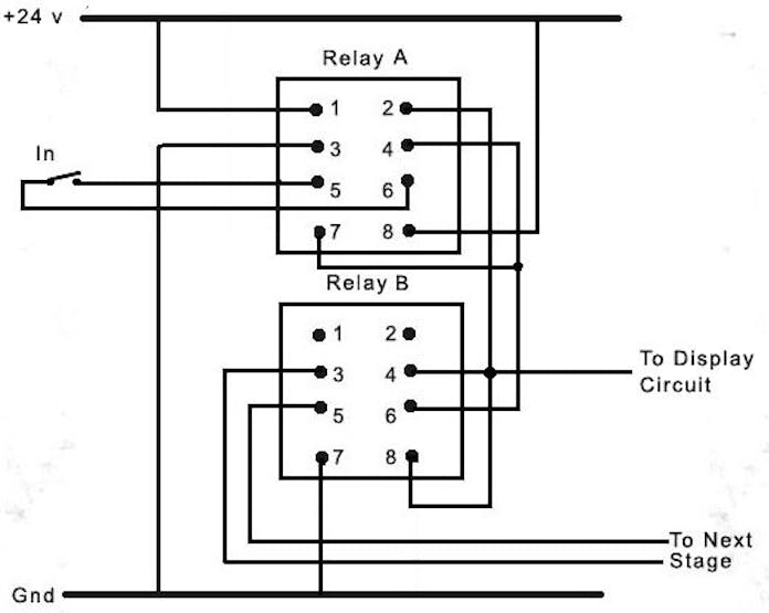 早在 1960 年,我最初的基于繼電器的二進(jìn)制計(jì)數(shù)器就沒有這個(gè)問題。我實(shí)際上使用了帶有額外極點(diǎn)或開關(guān)的 3PDT 繼電器來顯示結(jié)果。由于那時(shí)我們沒有 LED,我實(shí)際上使用連接到第三極開關(guān)的小霓虹燈來顯示計(jì)數(shù)。