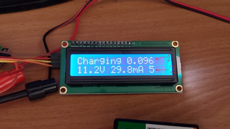 我不想要很多電線,所以沒有配置充電的按鈕。懊惱電流僅在代碼中配置。您需要在charger.ino 中設置所需的充電電流