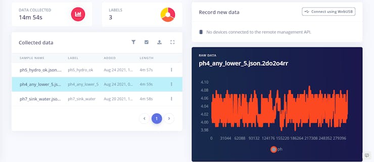 為了測試模型,我進行了實時分類,并從 ph 5 解決方案中收集了五分鐘的數(shù)據(jù)。該模型能夠識別收集到的數(shù)據(jù)屬于 ph 5 數(shù)據(jù)集。由于檢測到的值包含在數(shù)據(jù)集中,因此沒有檢測到異常。