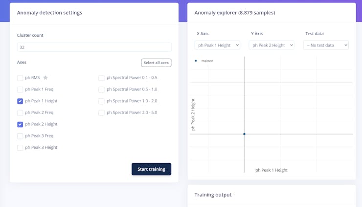 神經(jīng)網(wǎng)絡(luò)能夠區(qū)分數(shù)據(jù)集,所以我可以繼續(xù)下一步:將“異常檢測”塊添加到脈沖設(shè)計中,允許將神經(jīng)網(wǎng)絡(luò)無法識別的異常數(shù)據(jù)分類。