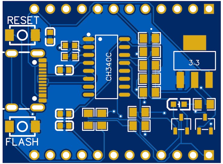 我將更新的原理圖轉(zhuǎn)換成 PCB,然后根據(jù)我的 ESP12E 擴(kuò)展板制作兼容擴(kuò)展板。我將所有組件安裝到底層,以便它們?cè)诰幊虝r(shí)可見(jiàn)并且易于排除故障。如果您想使用與我相同的設(shè)計(jì),請(qǐng)從這里獲取。