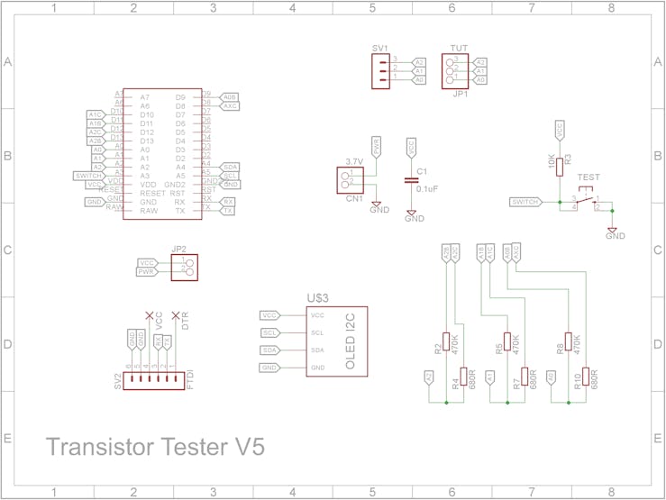 周圍有許多組件測試器構(gòu)建,這只是其中的一個。我使用的軟件識別了大部分標準組件;電阻器、電容器、電感器、二極管(和雙二極管)、晶體管、J-FET、MOS-FET、SCR 或晶閘管、雙向晶閘管。它無法識別 Diacs、UJT(解釋為雙二極管)和齊納二極管(解釋為普通二極管)。