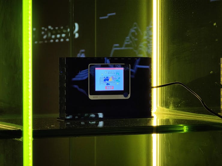 當通過 Vision AI 識別到有人時,它會提醒人們離開時關(guān)閉空調(diào)。如果沒有人,它會顯示靜止的圖片。它可用于辦公室、家庭和學校的桌面或前臺環(huán)境。