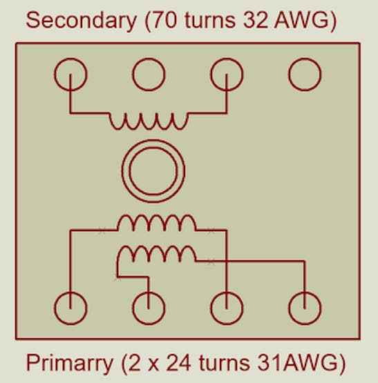 次級:70 圈規(guī) 32 (? 0.20mm) ( ≈ 138 μH)