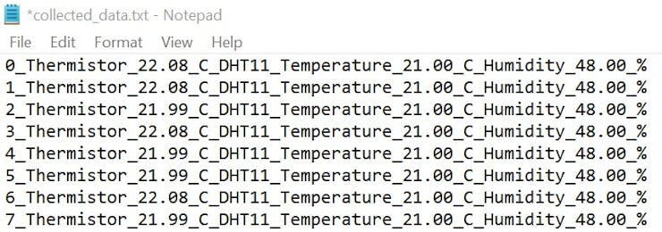 根據(jù)代碼,每秒來自 2 個傳感器的溫度將以這種格式保存: