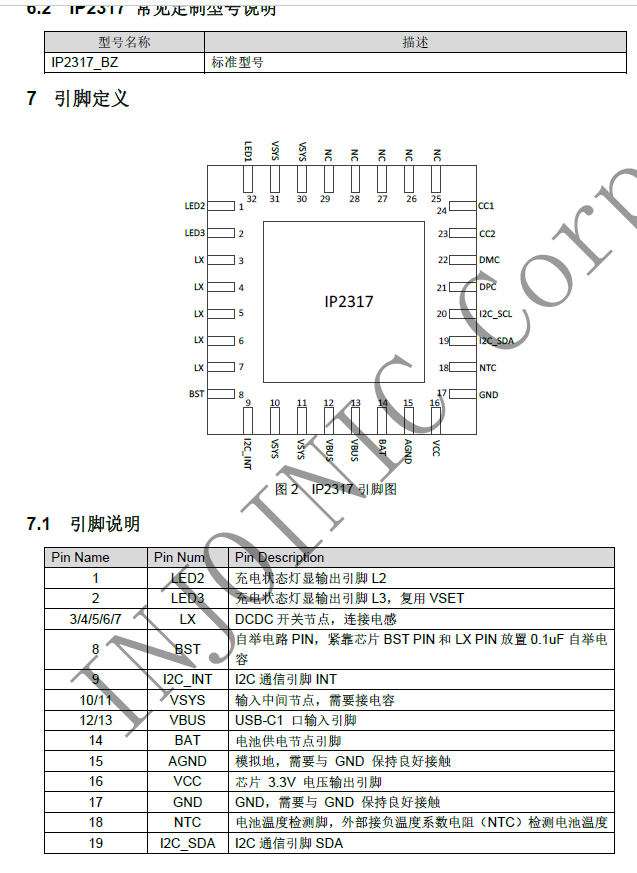 IP2317 集成 NTC 保護(hù)功能,配合 NTC 電阻可實(shí)現(xiàn)充電 NTC 保護(hù)。 IP2317 支持 1~2 顆 LED 狀態(tài)指示燈,可以自動(dòng)識(shí)別所接的 LED 燈數(shù)目IP2317 支持一路 I2C 接口。IP2317 采用 5 mm × 5 mm 0.5pitch QFN32 封裝。