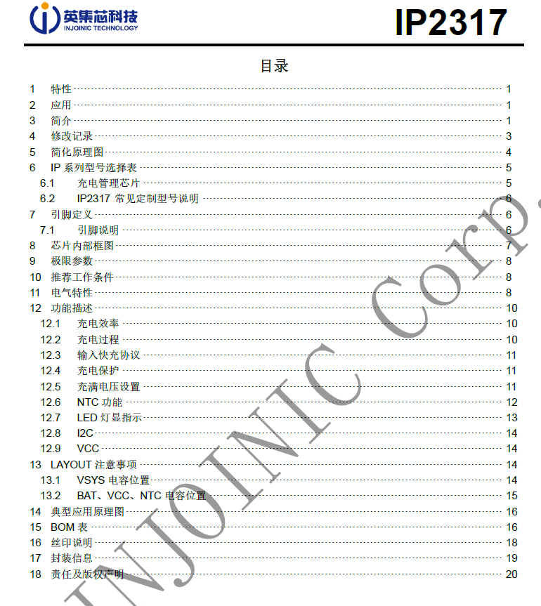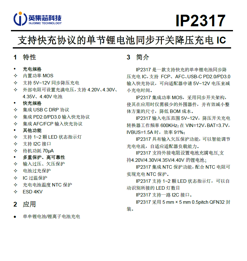 IP2317支持快充協(xié)議的單節(jié)鋰電池同步開(kāi)關(guān)降壓充電 IC