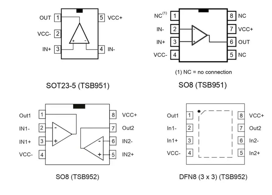 TSB951/TSB952:高帶寬、軌到軌輸出、36V運(yùn)算放大器的關(guān)鍵特性與應(yīng)用