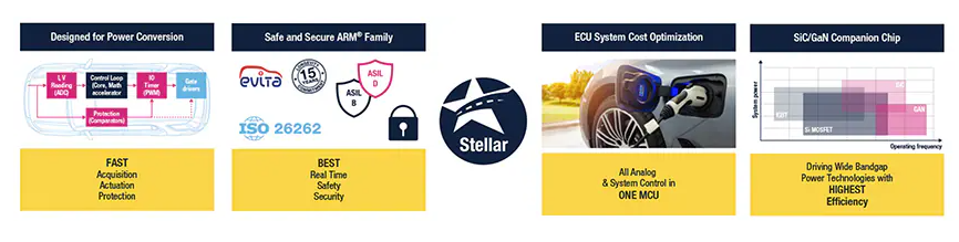 STMicroelectronics SR5E1x Stellar E 32位Arm? Cortex?-M7汽車MCU設(shè)計(jì)用于滿足寬帶隙電源技術(shù)、碳化硅...