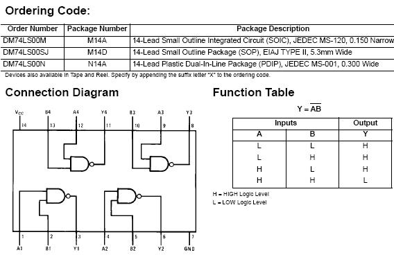74ls00為四2輸入與非門,管腳圖引腳圖及真值表