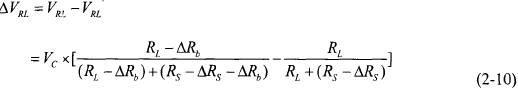 其中,Vc為電路供電電壓,一般為±5V。將2-5和2-6兩式相減,可以得到由于環(huán)境變化導(dǎo)致的輸出誤差,即