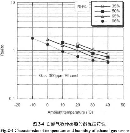 實(shí)際上,得益于現(xiàn)代制作工藝的發(fā)展以及各種更高性能的敏感材料的應(yīng)用,氣敏傳感器的檢測精度已經(jīng)獲得了很大提高,環(huán)境溫濕度變化對測量的影響己經(jīng)得到了很大的改善。但是正如上文分析的那樣,環(huán)境因素的干擾,仍是制約乙醇?xì)饷魝鞲衅鳒y量精度的一個(gè)重要的因素。