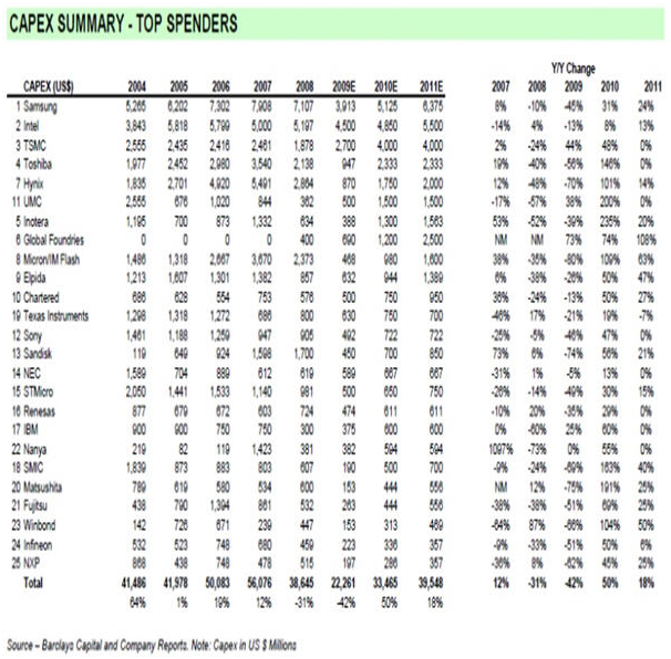 按ICInsight數(shù)據,在2007年存儲器投資達323億美