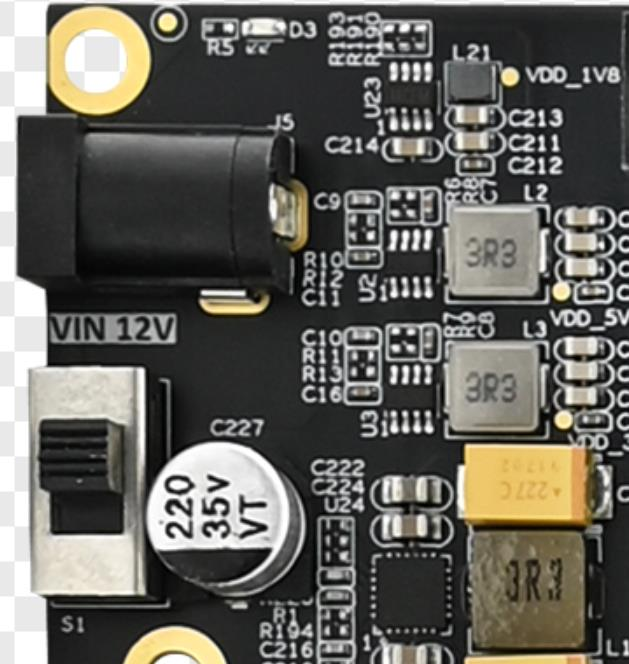 給模組供電的電源輸出電壓需要穩(wěn)定,在模組電源輸入加一級 DCDC 電源 轉換,從高電壓轉到 8-12V(推薦 8V),DCDC 電流輸出能力可以選 8A 左右,如 電源芯片 TPS54A24RTWR 可以參考。在模組電源輸入處需放置 2 顆 220uF/25V 電容保證電源質量。