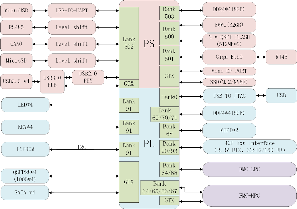 ZU19EG 兩個兼容版本,分別使用了 XILINX 公司的 XCZU17EG-2FFVC1760I 和 XCZU19EG-2FFVC1760I 作為主控制器,默認生產型號為 ZU19EG,如用戶需要 ZU17EG,可以聯(lián)系璞致生產。