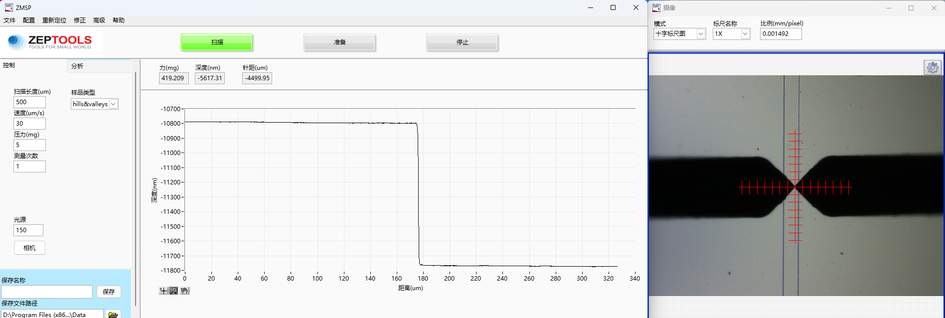 JS系列臺(tái)階儀通過金剛石探針與樣品表面的接觸掃描,將微觀輪廓的垂直位移轉(zhuǎn)化為電信號(hào),結(jié)合高靈敏度傳感器與信號(hào)處理算法,實(shí)現(xiàn)納米級(jí)精度的表面特征捕捉。其核心技術(shù)亮點(diǎn)在于超微壓力恒定控制系統(tǒng),通過精密調(diào)節(jié)探針與樣品間的接觸壓力,既避免了對(duì)軟質(zhì)材料的損傷,又確保了測(cè)量過程的穩(wěn)定性。此外,設(shè)備搭載的攝像頭實(shí)時(shí)成像系統(tǒng),可同步觀察樣品區(qū)域與探針尖端的位置關(guān)系,輔助用戶精確定位特征結(jié)構(gòu),顯著提升測(cè)量效率。