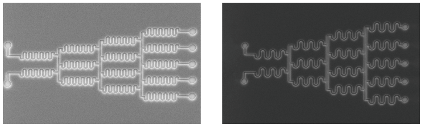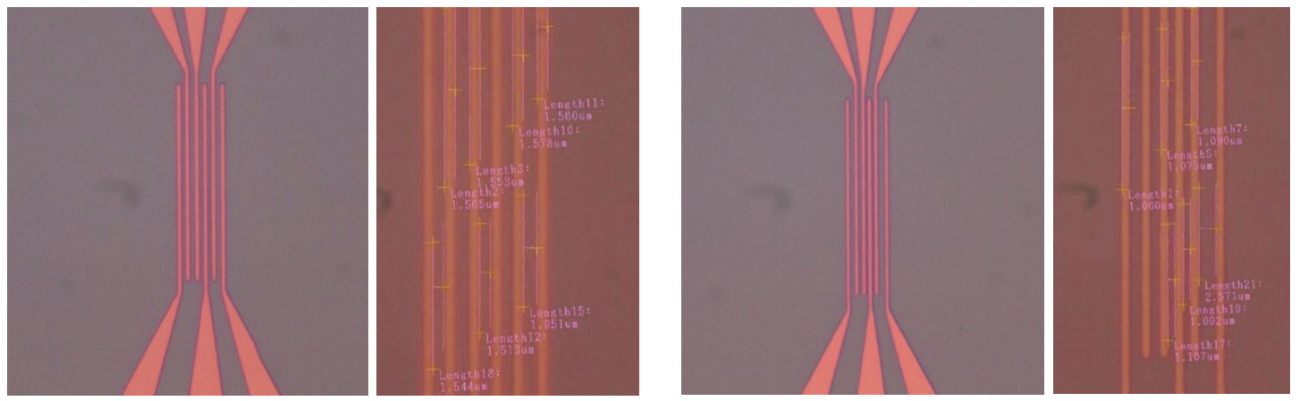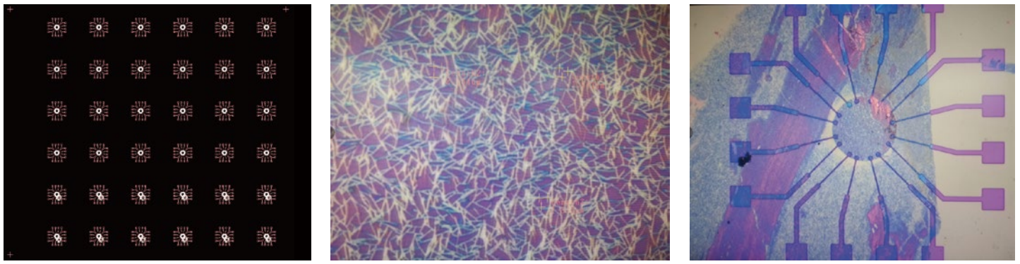 ▲ 碲納米網(wǎng)格刻蝕后套刻電極