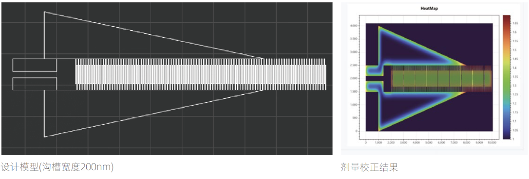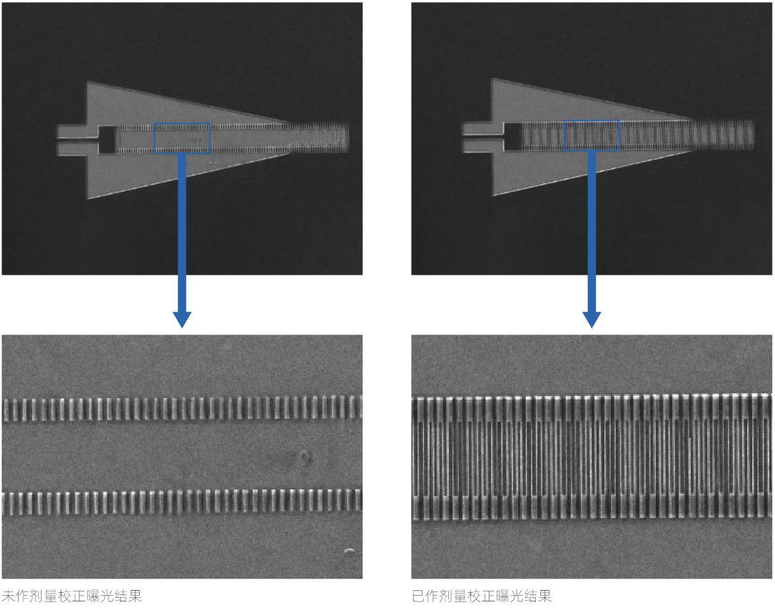 ▲電子束鄰近效應(yīng)校正功能 · 劑量校正效果