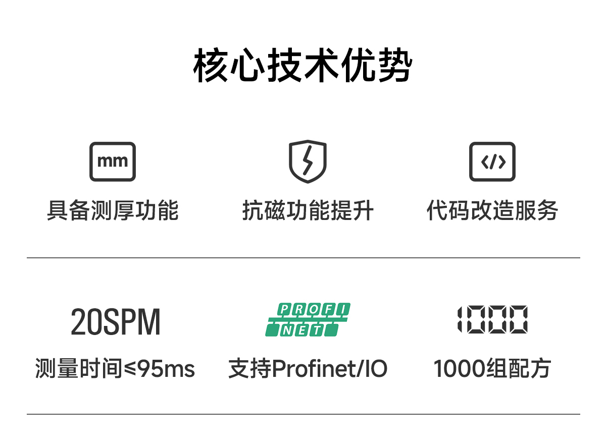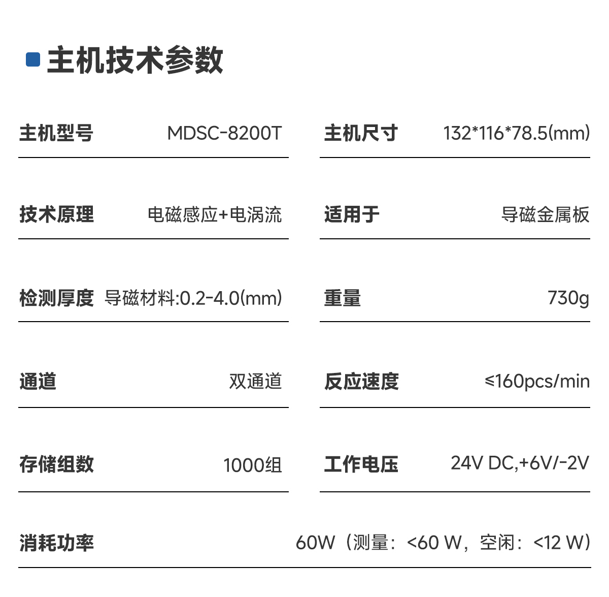 產(chǎn)品型號(hào):MDSC-8000S 檢測(cè)厚度:0.1-3mm 響應(yīng)時(shí)間:200 pcs/min 通訊協(xié)議:內(nèi)置485通訊模塊 -