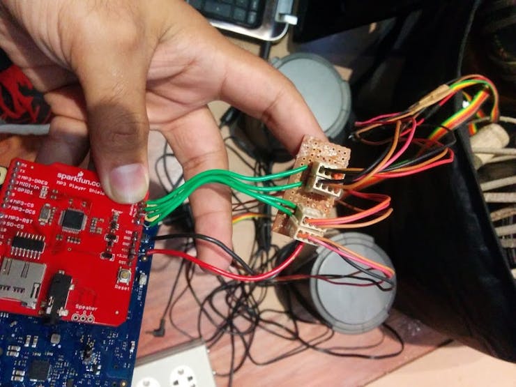 1) 從傳感器到 Spark Fun MP3 Shield 的連接。